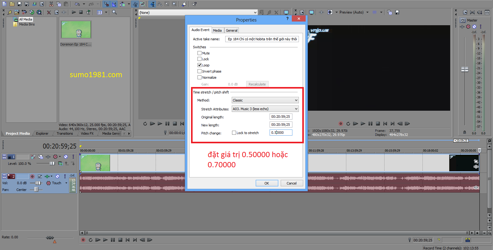 3/ Change Pitch audio