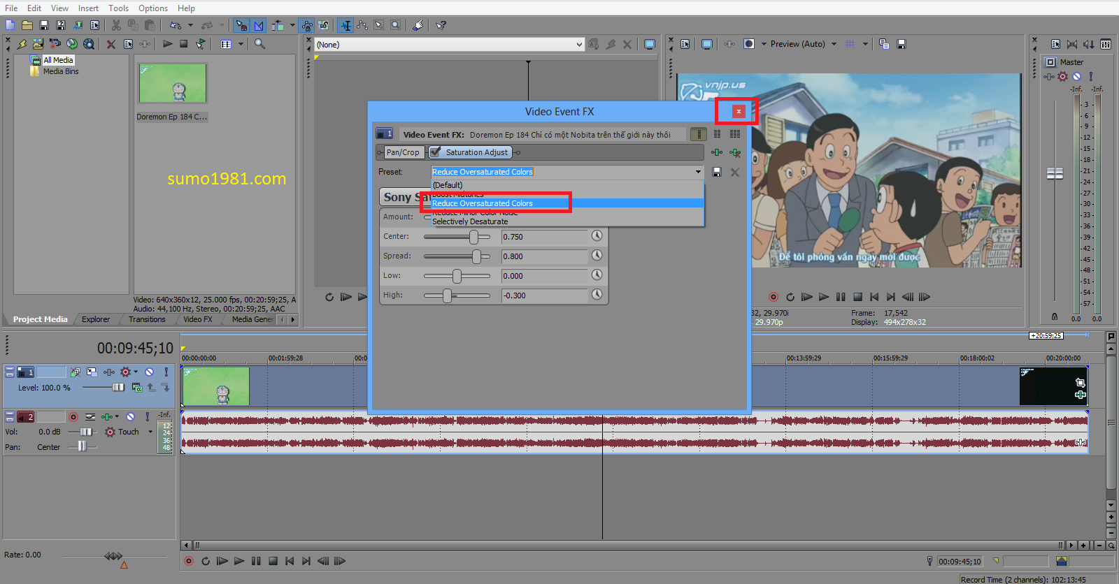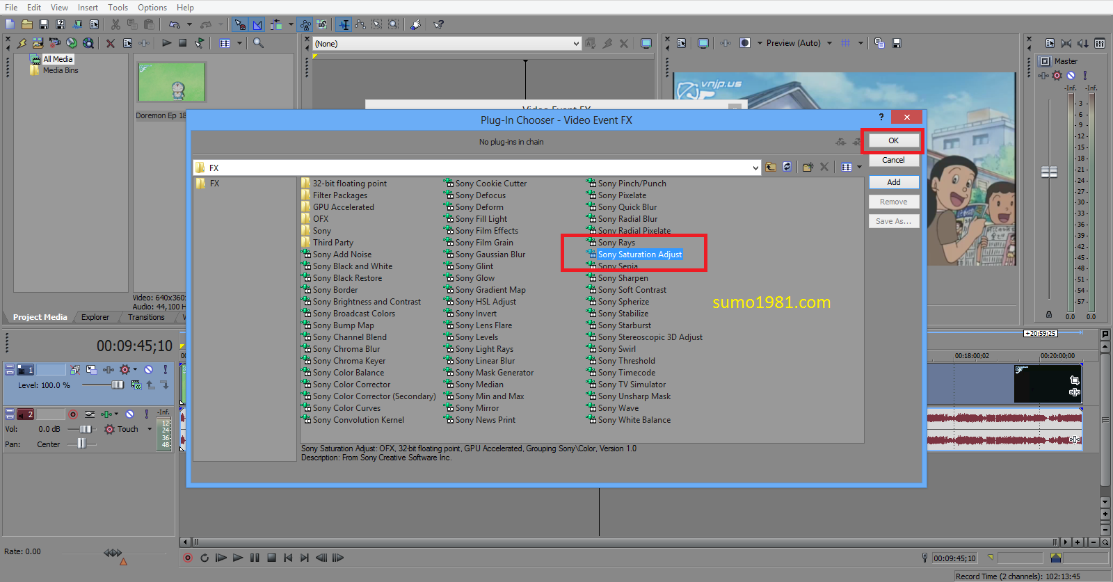 - Chọn Sony Saturation Adjust