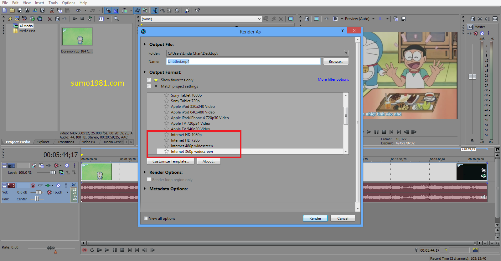 Hướng dẫn các bước: Do làm demo nên chọn render chuẩn 360 cho nhanh, các bạn có thể chọn chuẩn HD khi xuất video clip ra Full HD