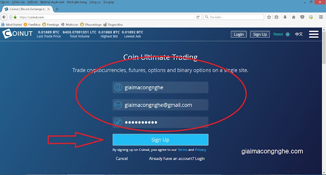 Tutorial coinut.com đăng ký nhận 0.005LTC