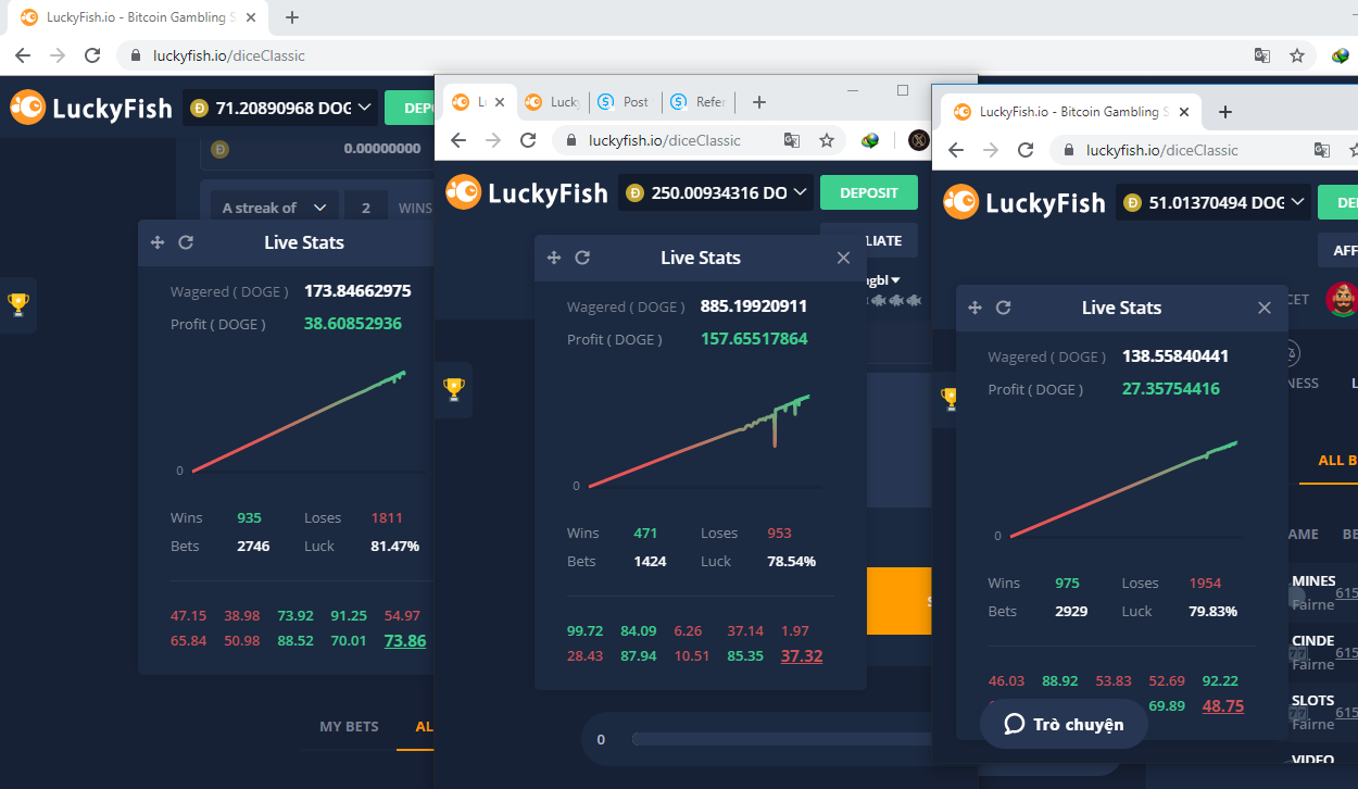 ?Tại sao mình nói kiếm tiền hằng ngày lợi nhuận lên tới 15-25% số vốn bạn nạp vào? Vì trò Classic Dice cài tỉ lệ win cao không như các trang Gambling khác? Vốn đề xuất nạp vào 10$ - 100$ nếu đại gia thì chơi lớn hơn.