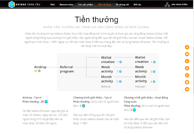 Bước 3: Tạo ví Netbox và nhận 20 NBX (trong đó có link 3 link ref cho các bạn đi giới thiệu để kiếm thêm NBX)