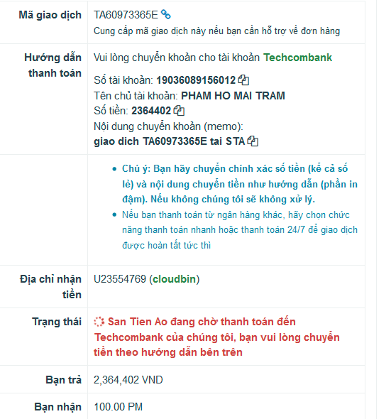 Dù rằng trong qua trình chuyển tiền bị stuck tại SantienAo.