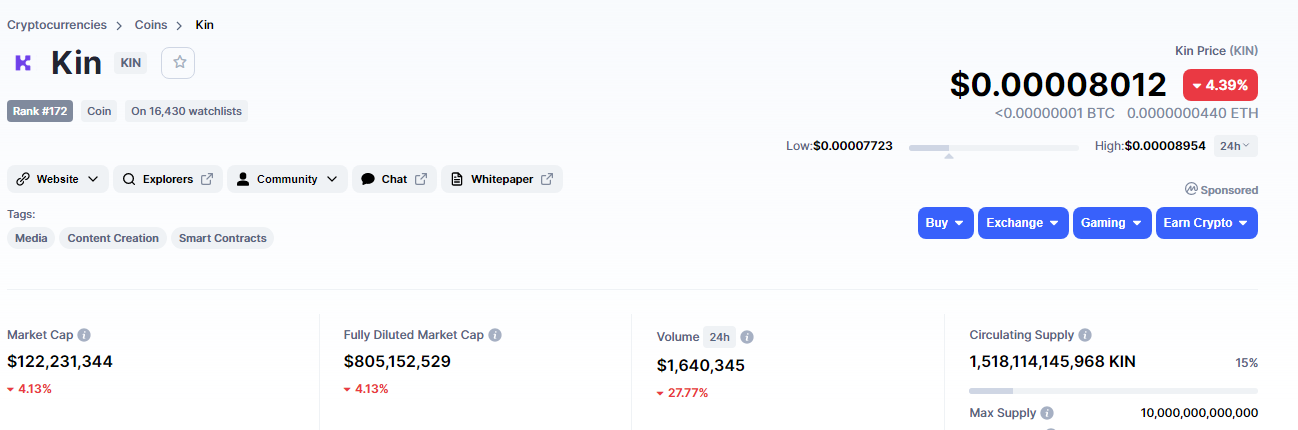 kin đã list sàn coinmaketcap top #172 rất tiềm năng