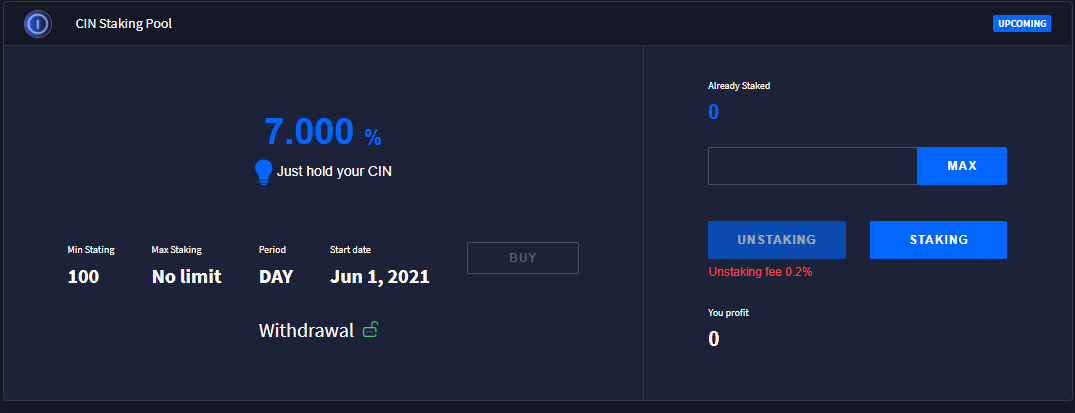 Airdrop CIN - Coinsbit tặng free 200$, ngày 1-6 bắt đầu cho staking và giao dịch