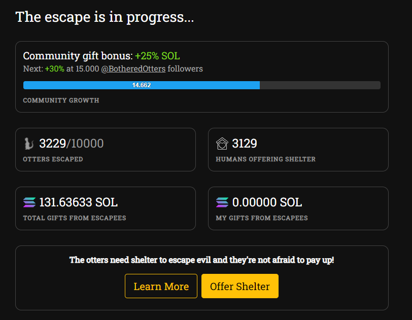 Bước 2: Mọi người CLick vào Offer Shelter để tiến hành đào: