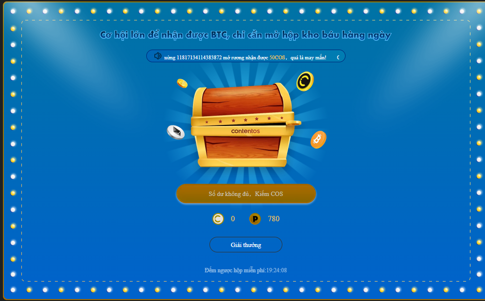 Vòng quay may mắn , mỗi ngày quay 1 lần , nhận token và coin nhé .