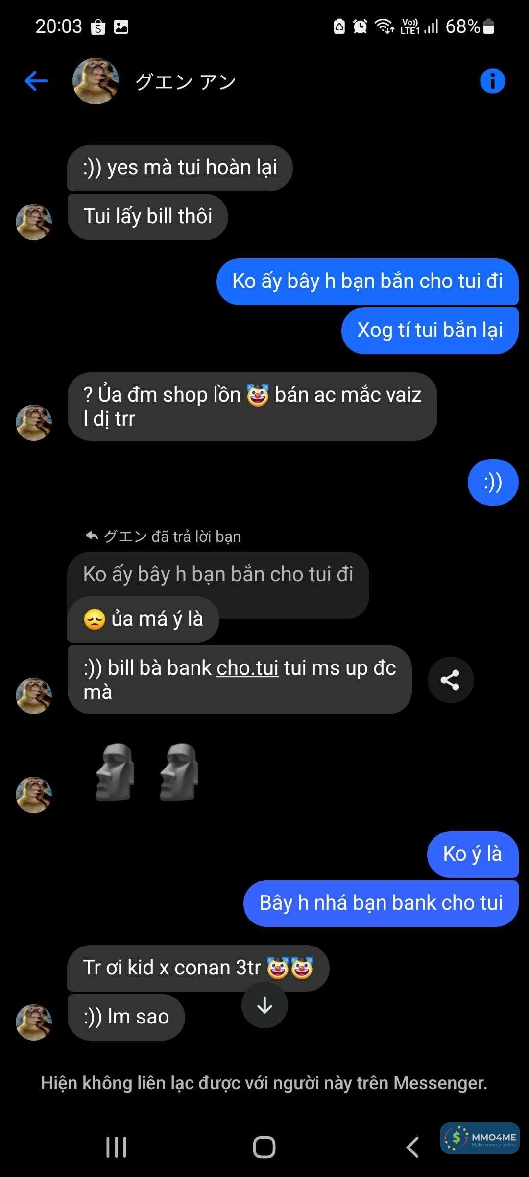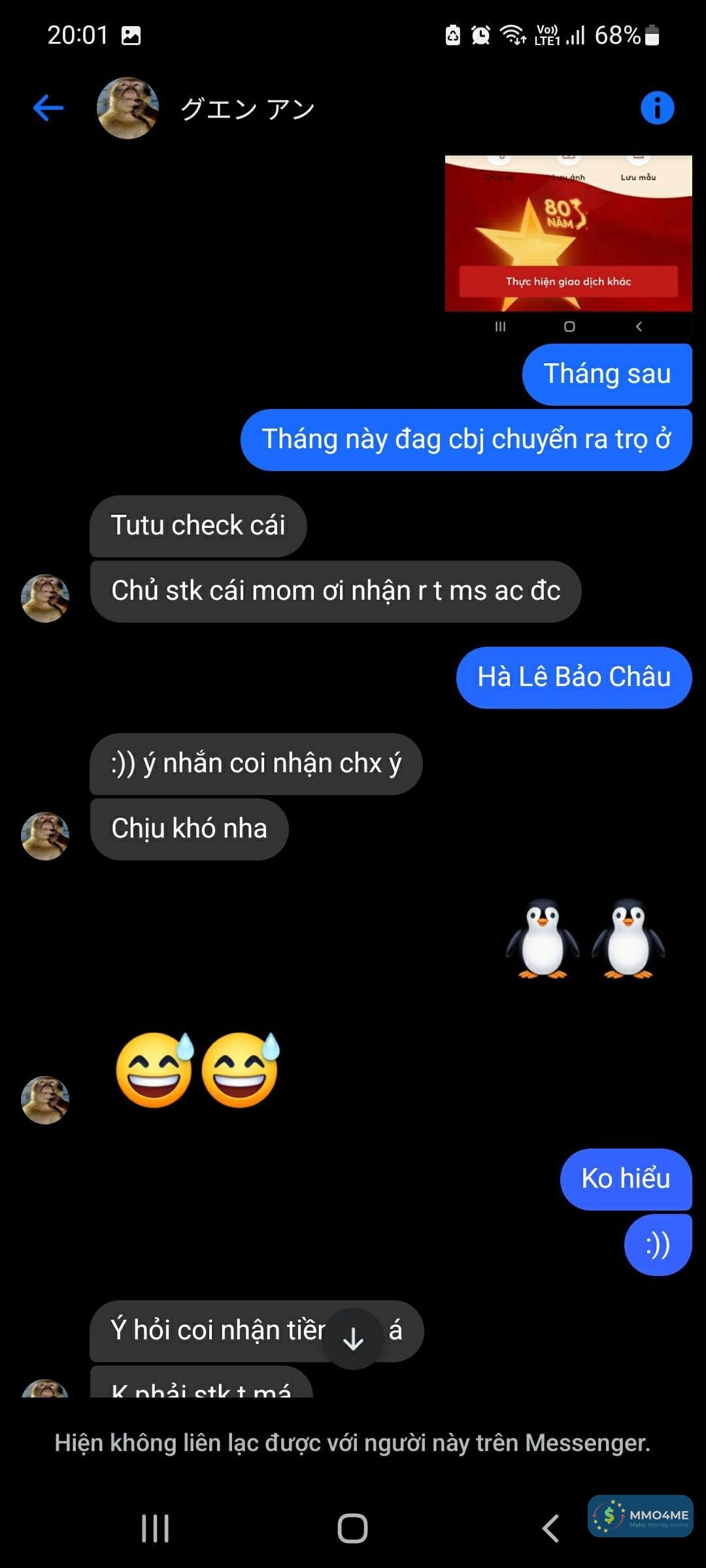 Hôm nay mình đăng bài này với mục đích là phốt scam á,chuyện là hôm trước mình có lập bóc xong mình đăng bài ttv vs qtv cái có bạn vô bình luận của mình ứng thì sáng hôm sau mình rep rồi bạn đó bạn đó kêu mình add cái acc chính bạn đó gửi link fb cho mình xong xuôi thì chj mình đang tính mua acc aya cccv thì bạn đó bảo ib trao đổi xong thì bank xong thì bạn đó đưa tk mk acc mà dính sdt vs cccd rồi block cả bóc out nhóm mấy bạn né nó ra nha do nó sài acc fb clone nên mình không tìm được