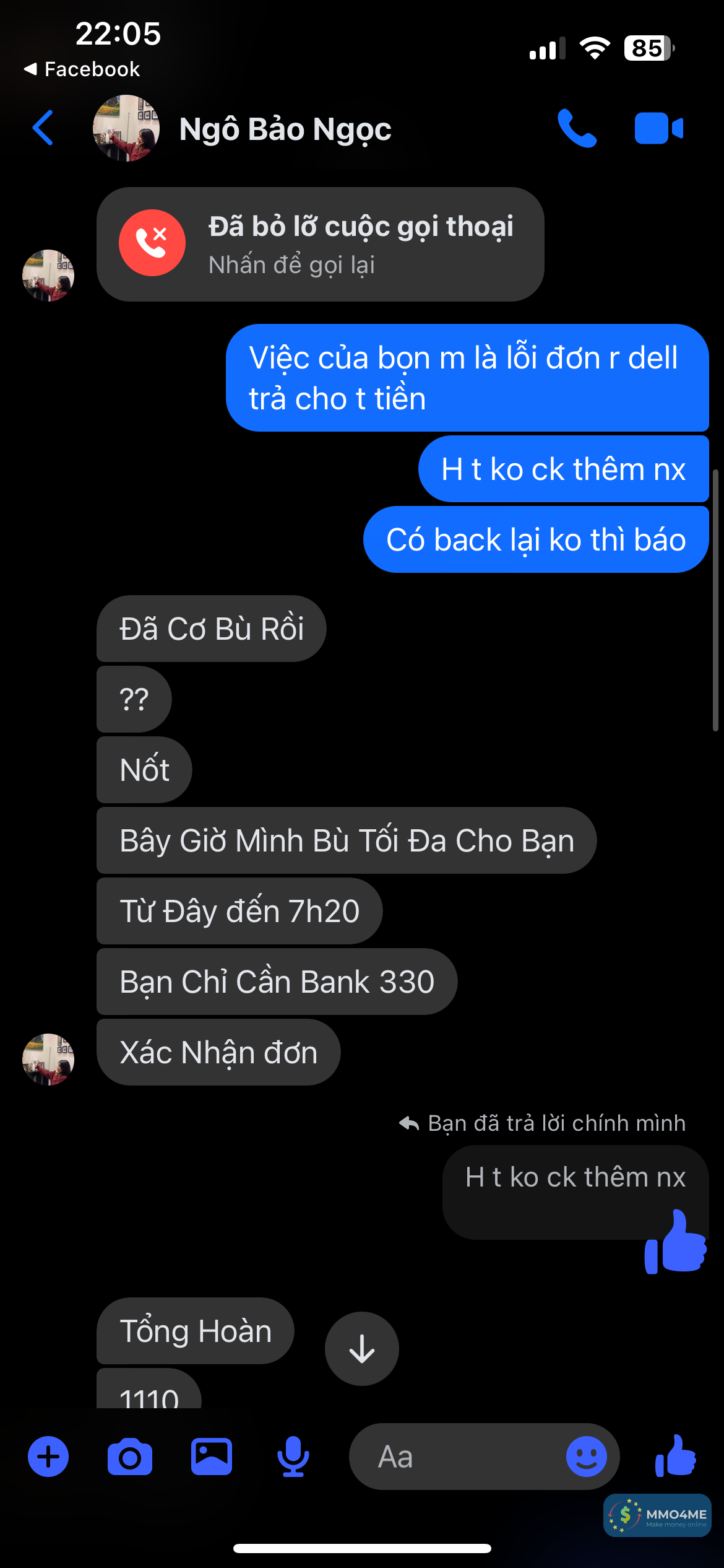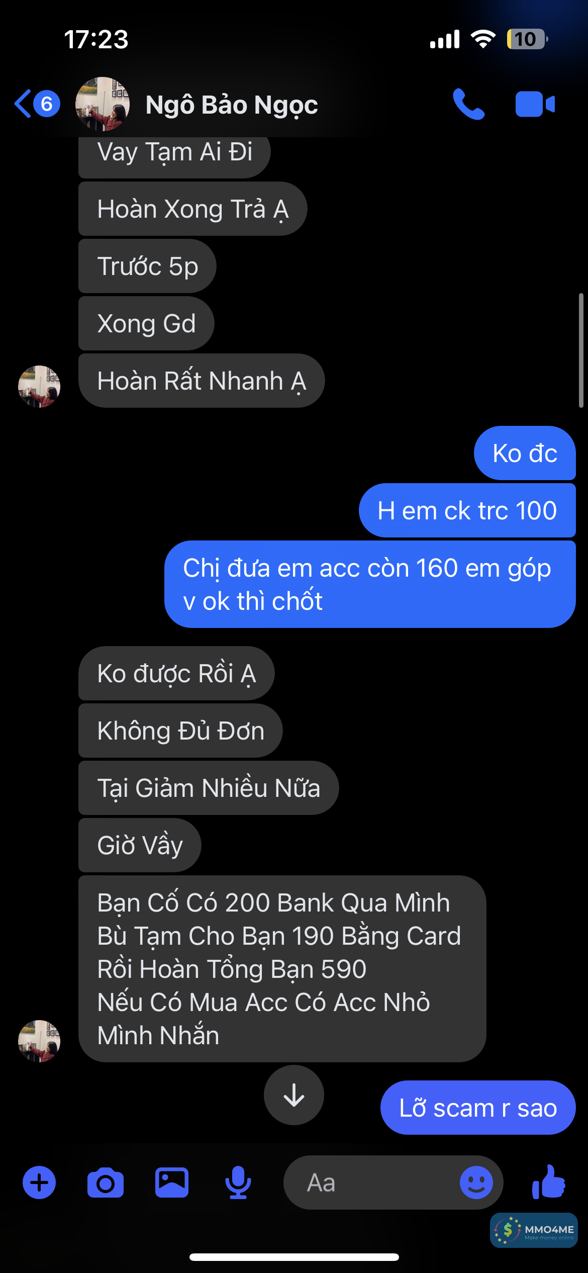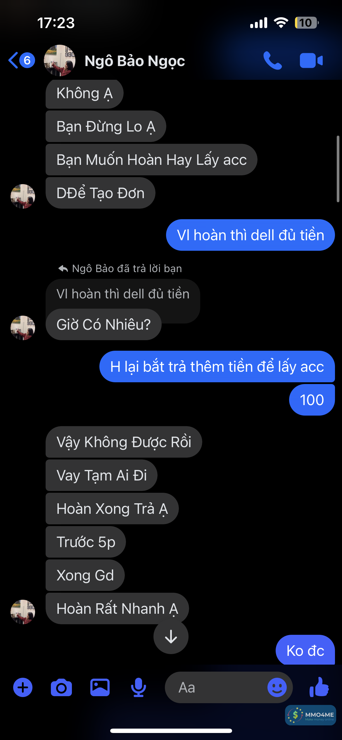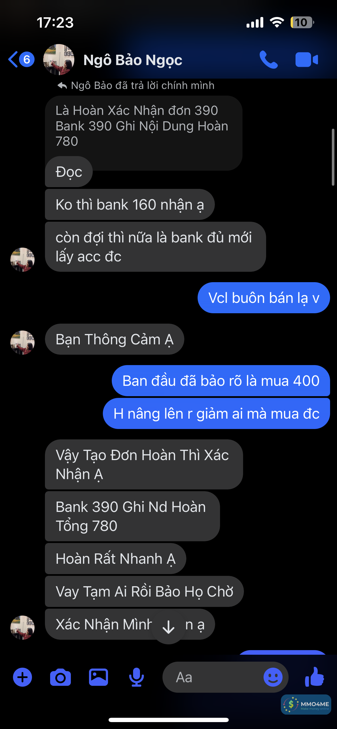 Con chó này nó bán toi cái acc 400k bank tiền xong cái nó kêu acc đó bị lỗi kêu nâng lên con acc 700 toi không chịu kêu back tiền lại=))).cái nó kêu bank nó thêm 390 nữa rồi nó back cho 780 bank nó xong rồi cái nó kêu lỗi bill gì đó phải bank nó thêm 780 nữa rồi nó back lại cho 1560 mà không có tiền sao bank cho nó đc cái nó kêu huỷ v.v