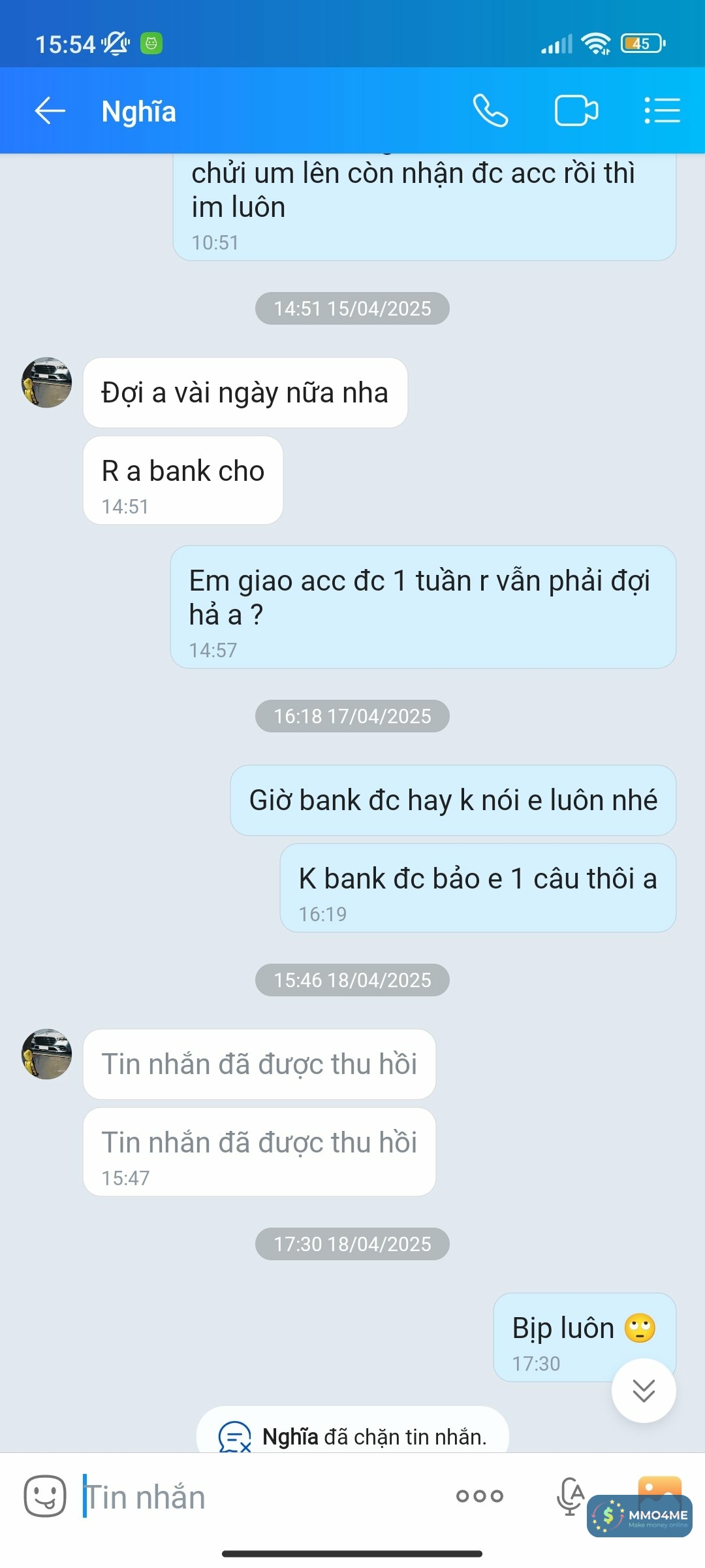 A này có thuê mình mở fb bị die 282 mình mở xong acc về thì có nói là cho vài ngày để setup acc ok mình cho 1 tuần luôn . Sau 1 tuần ib lại thì được hẹn vài ngày ck . Nay thì chặn luôn