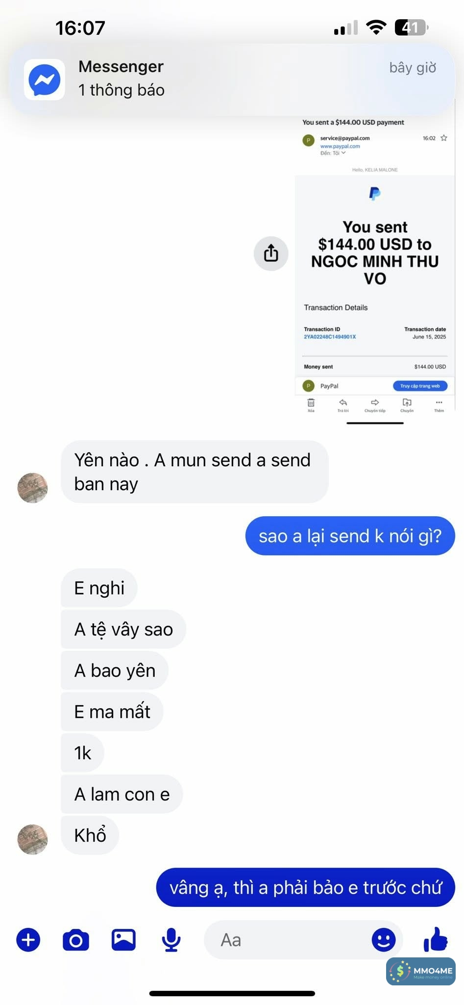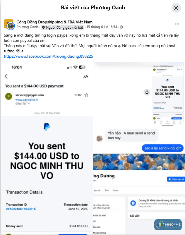 "Sáng e mới đăng tìm ng login paypal xong em bị thằng mất dạy văn vở này nó lừa mất cả tiền và lấy luôn con paypal của em.