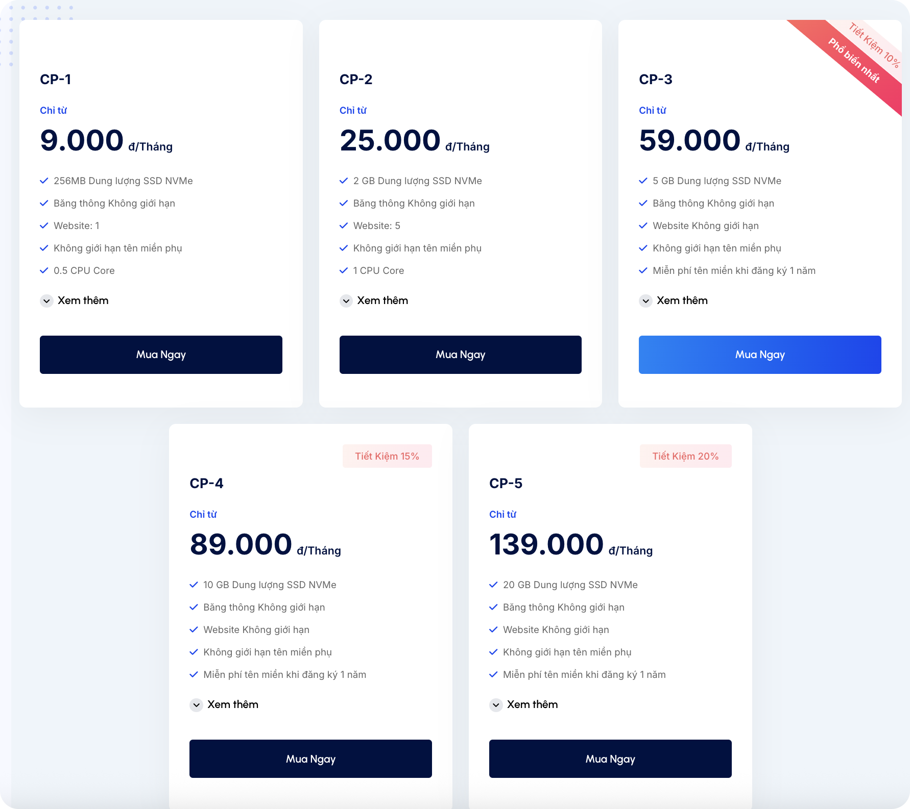 - Toàn bộ hạ tầng sử dụng CPU Intel Xeon Gold/Platinum, SSD NVMe Gen 3, mạng 10Gbps, chống DDoS 120Gbps, đảm bảo Uptime 99.95% và hiệu suất vượt trội cho mọi nhu cầu: Chạy Tools, phần mềm, Game Server, AI, SEO Tools, Lưu trữ web, PTU, Forex,…