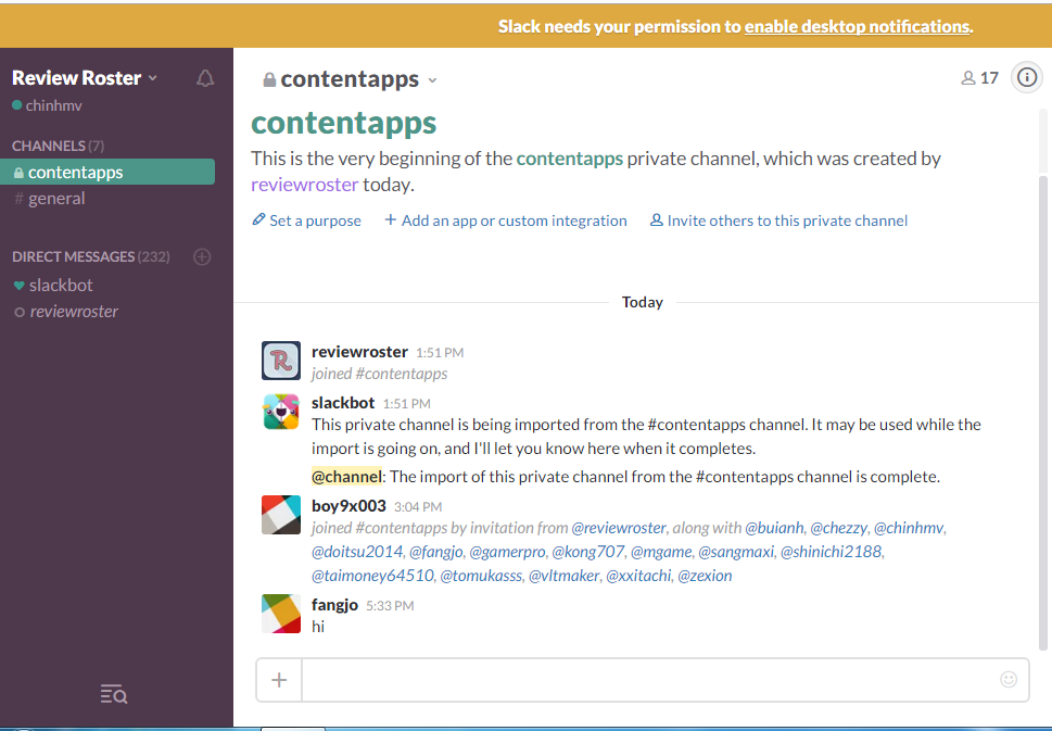thử nhờ mọi người bảo thằng admin cho vào nhóm slack đi xem sao