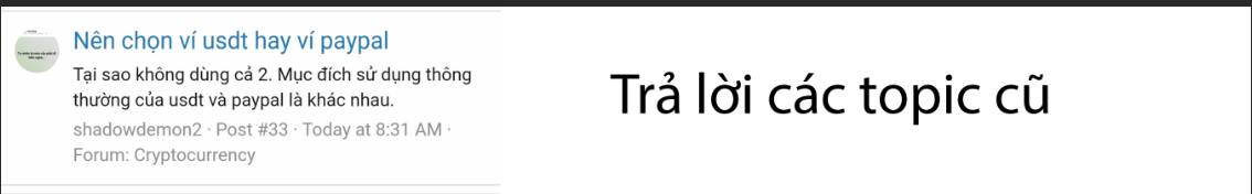 • Không có giá trị cho người khác đọc: topic quá cũ, vấn đề đã được giải quyết, ...
