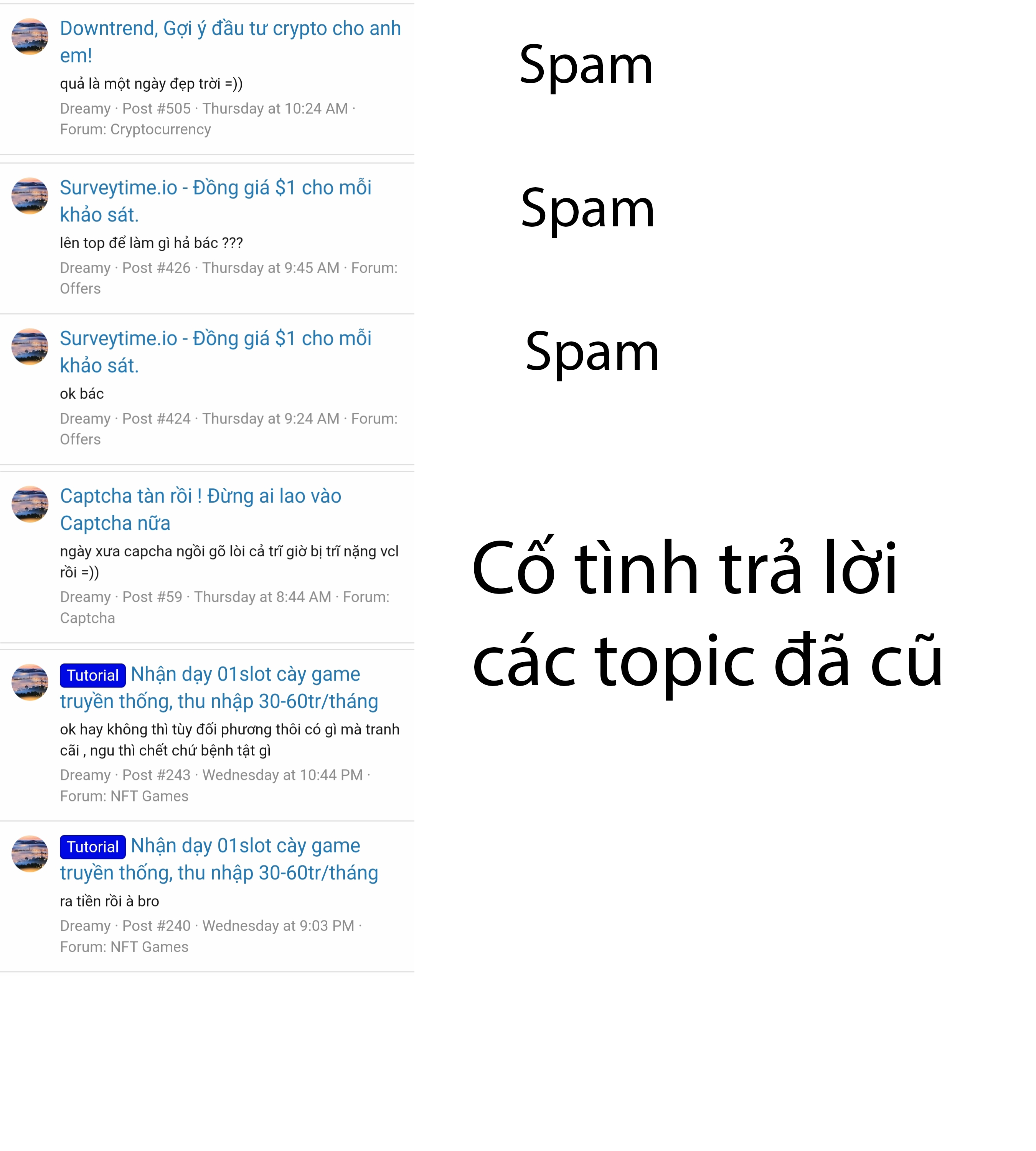 3. Các bài trả lời sau sẽ được cho là SPAM: