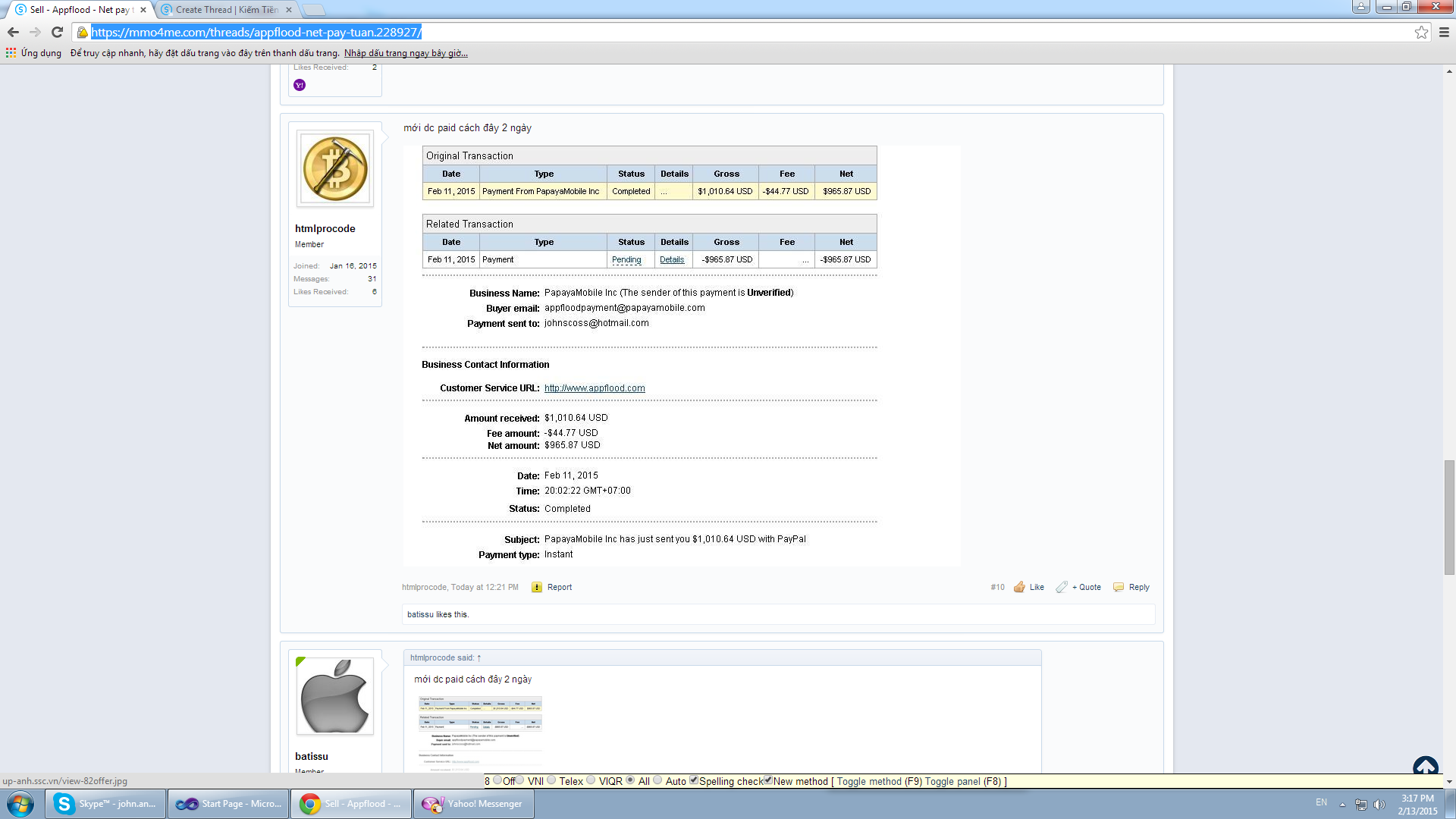 SCAM 1k$ paypal addmail, mmo4me: htmlprocode, yahoo: nguyenvietminh69