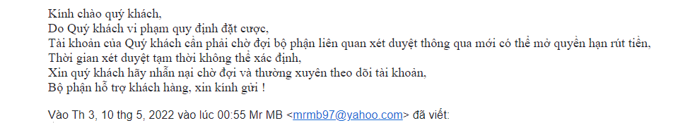 đây nhá cược thắng thì kêu vi phạm quy định đặt cược cược thua thì lấy luôn