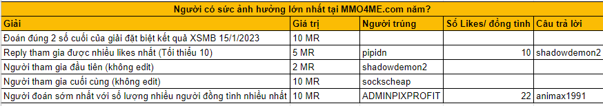 chuẩn không cần chỉnh ha haNgười có sức ảnh hưởng lớn nhất tại MMO4ME.com năm 2022 là Admin @Shin Bằng chứng: View attachment 210290