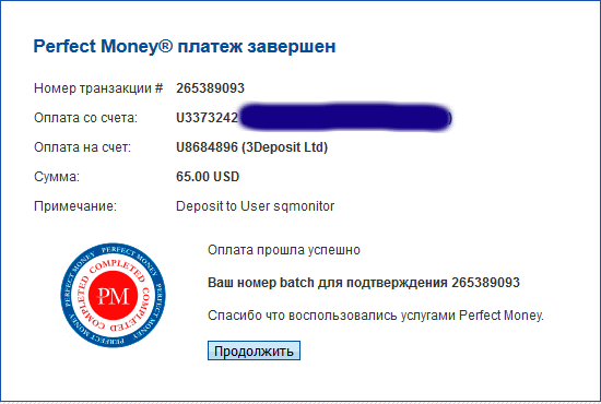 Memo : API Payment. Withdrawal to sqmonitor from 3deposit.com.