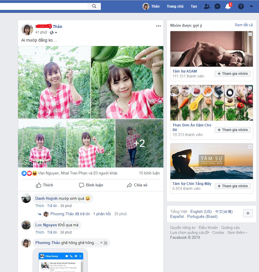 acc mình nuôi bằng tay nên độ trust khá cao , lượng tương tác tự nhiên 1 stt khoảng 300 - 400 like