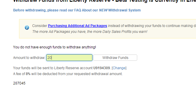 Your Withdraw Request of $33.49 (+ $2.91 fee) to Liberty Reserve account 'U1020286' was added to the withdraw bucket successfully!