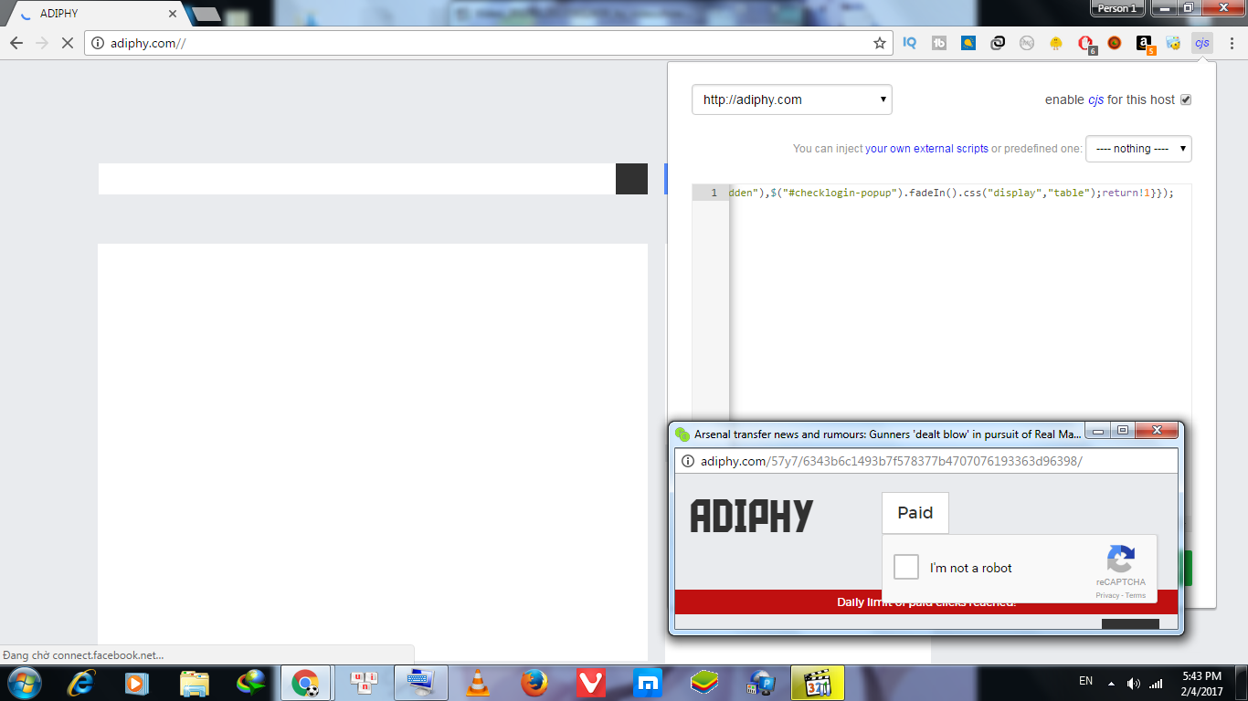 $("#go-link").one("submit",function(a){a.preventDefault();var b=$(this);b.find("button");$.ajax({dataType:"json",type:"POST",url:b.attr("action"),data:b.serialize(),beforeSend:function(a){b.replaceWith('<button class="btn btn-lg btn-default" onclick="javascript: return false;">Paid</button>')},success:function(a,b,c){a.url||console.log(a.message),window.opener.location.reload()},error:function(a,b,c){console.log("An error occured: "+a.responseText)},complete:function(a,b){}})}),$("#go-link").submit(),$(".item-site:contains('adiphy'):first").each(function(a){if("http://adiphy.com//"==window.location.href){if($(".user-logged").length){var b=$(this).parent().parent().find(".item-alias").html(),c=$(this).html();if($(".logon")[0]){var d=$("#user-token").html(),e=window.open(c+"/"+b+"/"+d+"/","Ratting","width=550,height=170,top=20000,left=100000,status=0,");setTimeout(function(){e.close()},7000),setTimeout(function(){window.location.reload()},8000)}else window.location.reload()}else $("body").css("overflow","hidden"),$("#checklogin-popup").fadeIn().css("display","table");return!1}
