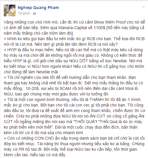 Uầy, kinh thế, giỏi thế, giàu thế. Đại gia có học vậy mà thở ra toàn *** thế. Văn hay chữ tốt sao lại dùng để đi bịp gà trục lợi cho bản thân thế ?