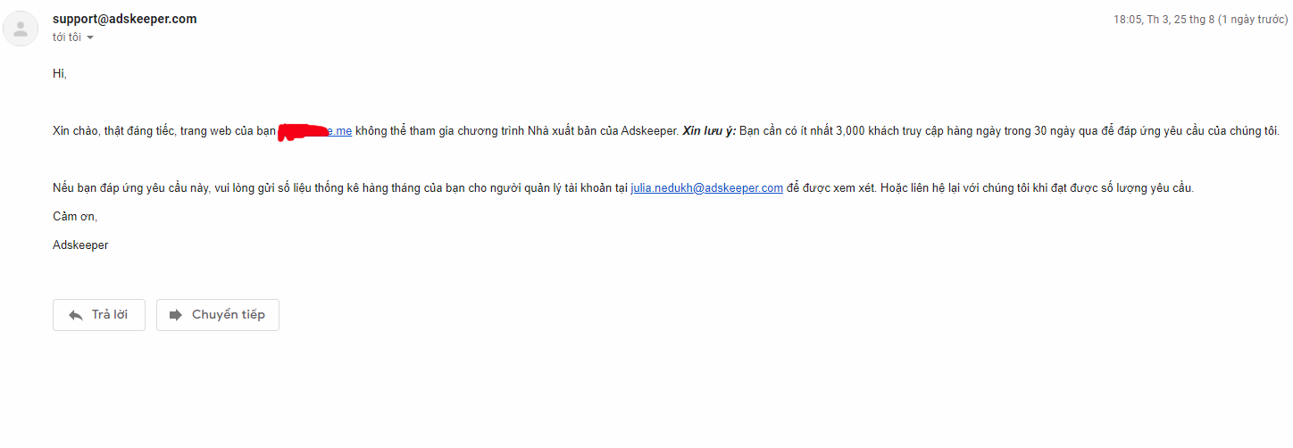 Bạn gửi mail cho support nhaNhắn tin cả ngày mới dc tn lần. thử xem ntn mà ko ổn nên bỏ rồi. thường QC dạng này ko đc CPM cao đâu.