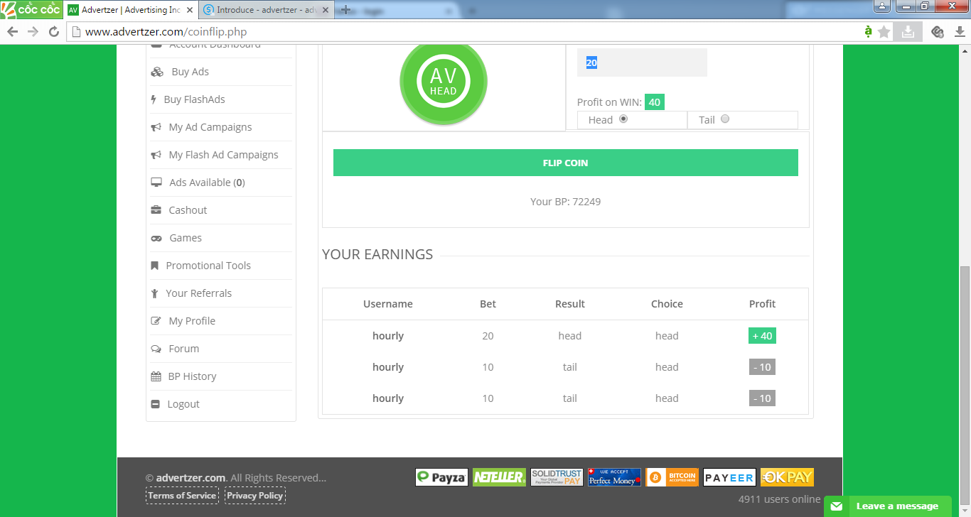 Admin đã bổ sung thêm game Head - Tail cho các bác nào thừa BP hay các tín đồ của đỏ đen. Nhưng lời khuyên vẫn là ko nên tiêu tốn BP vào những trò vô bổ này.