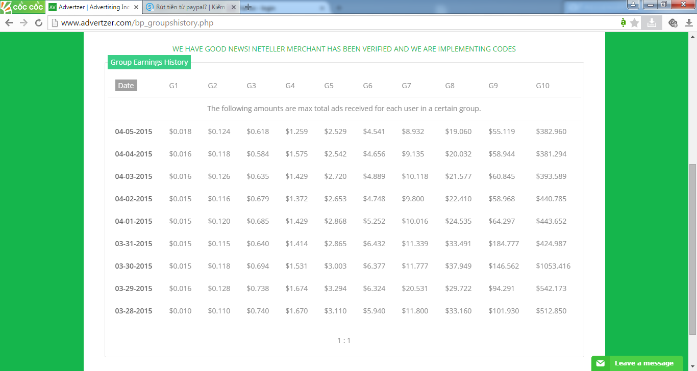 Có ref thì chủ yếu là ăn % Ref click thui. Chứ tiền mua BP thì RB cũng gần hết rùi. Ref Group 8 mà cứ trên 30$ tèn tèn như 10 ngày đầu thì ngon. :D. Haha!