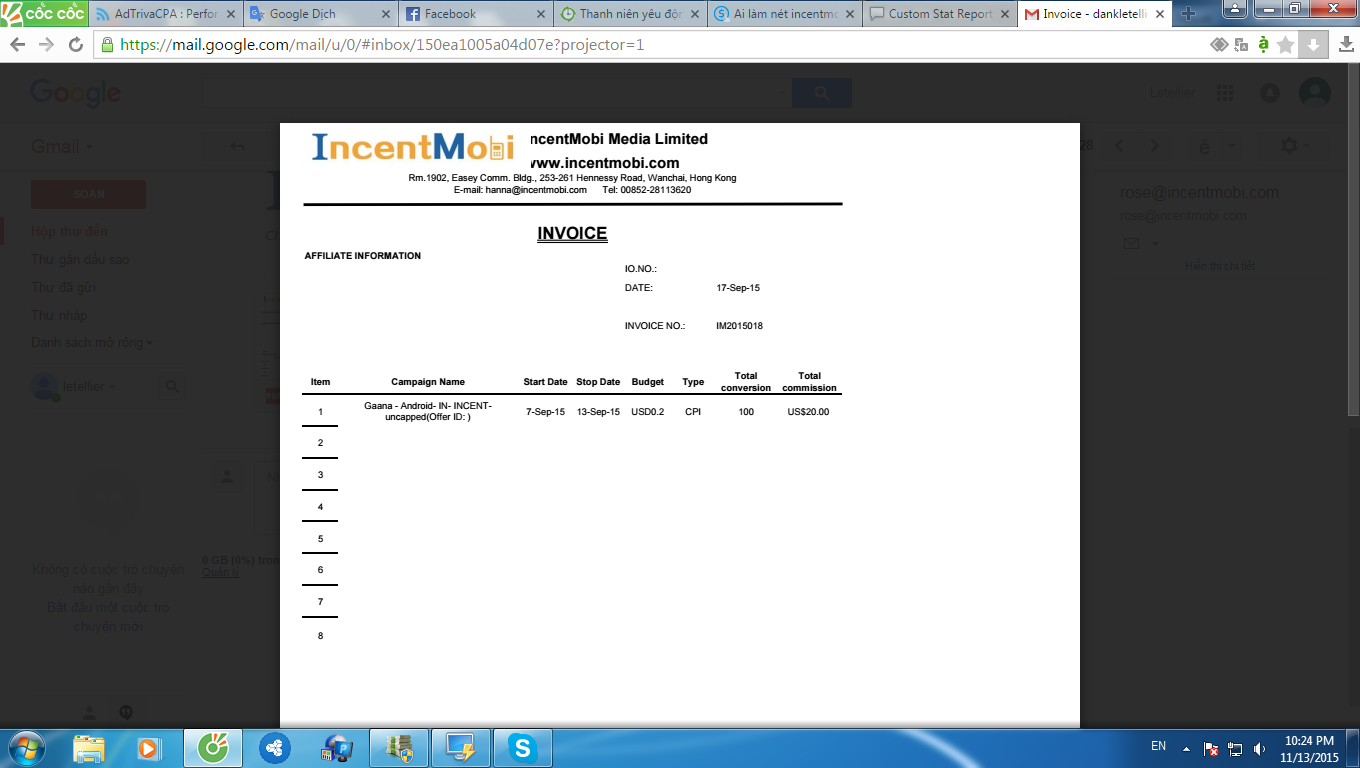 invoice cậu ak, lịch sử payment của các net khác mà cậu ấy đang làm đó