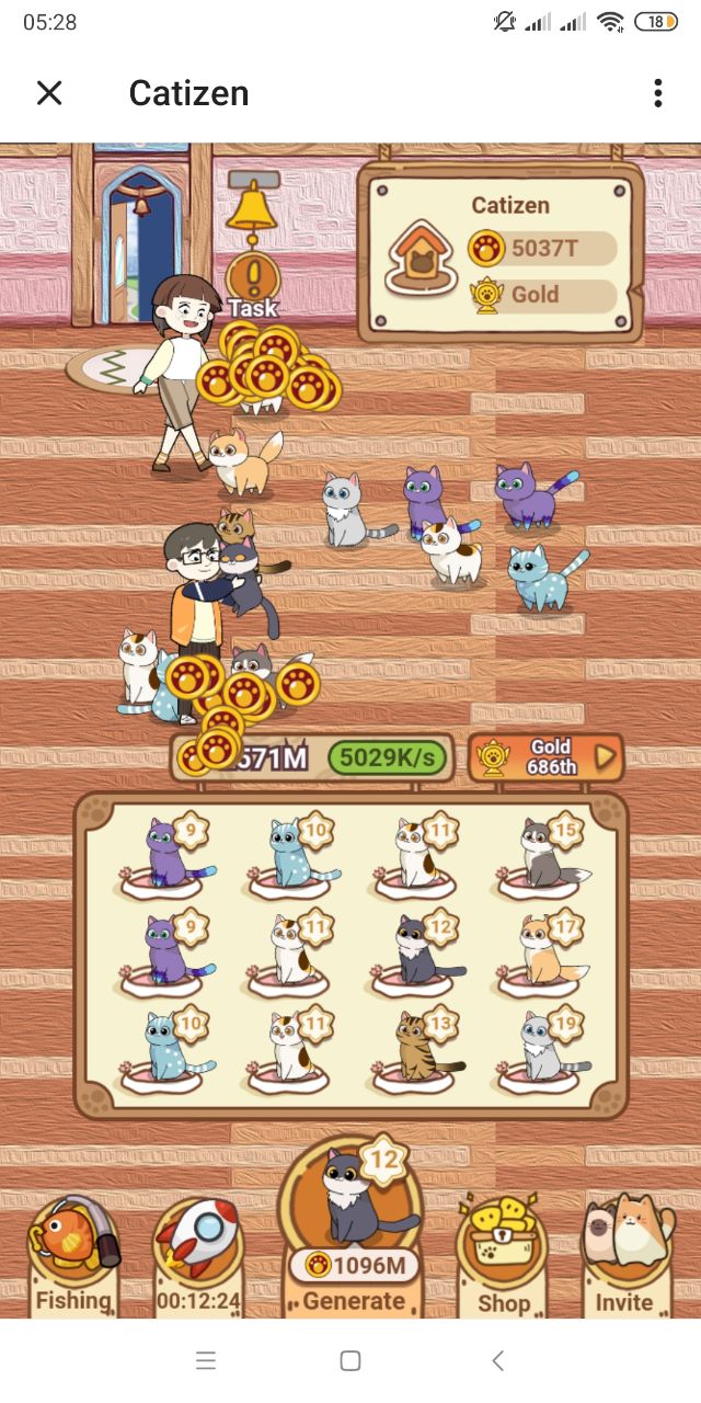 5. Hàng ngày làm nhiệm vụ trong Task để nhận $FISH. $FISH dùng để mua mèo lv cao, x2 tốc độ,...