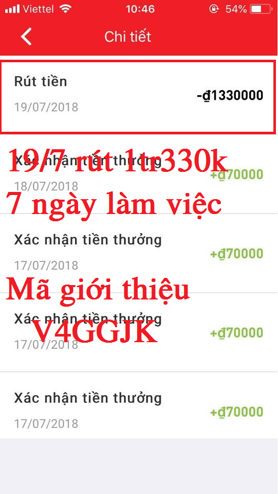 + 70.000đ tiền thưởng rút về atm / lượt đăng ký thành công.