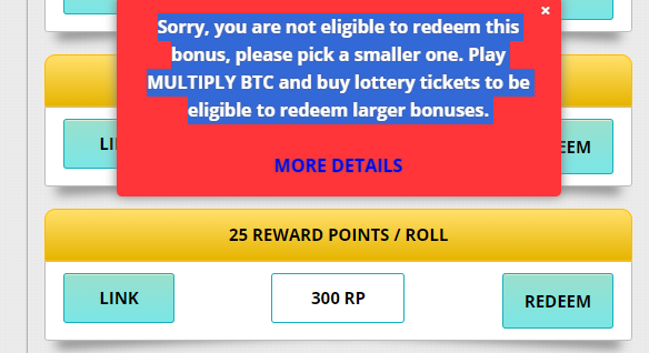 mình đang có nhiều hơn 300rp, nhưng tại sao lại không đổi được phần thưởng 25rp/roll vậy ?
