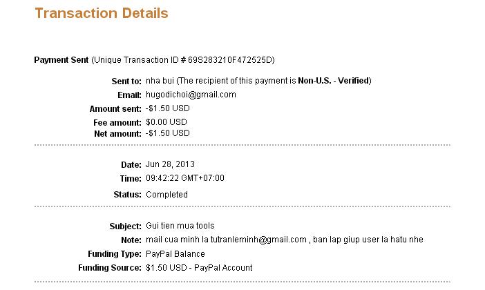 Thớt cho hỏi, mình send PP1.5 qua acc, sau rồi gởi user/pass cho thớt để mua tool hả. Hay là ghi vô note khi send PP luôn