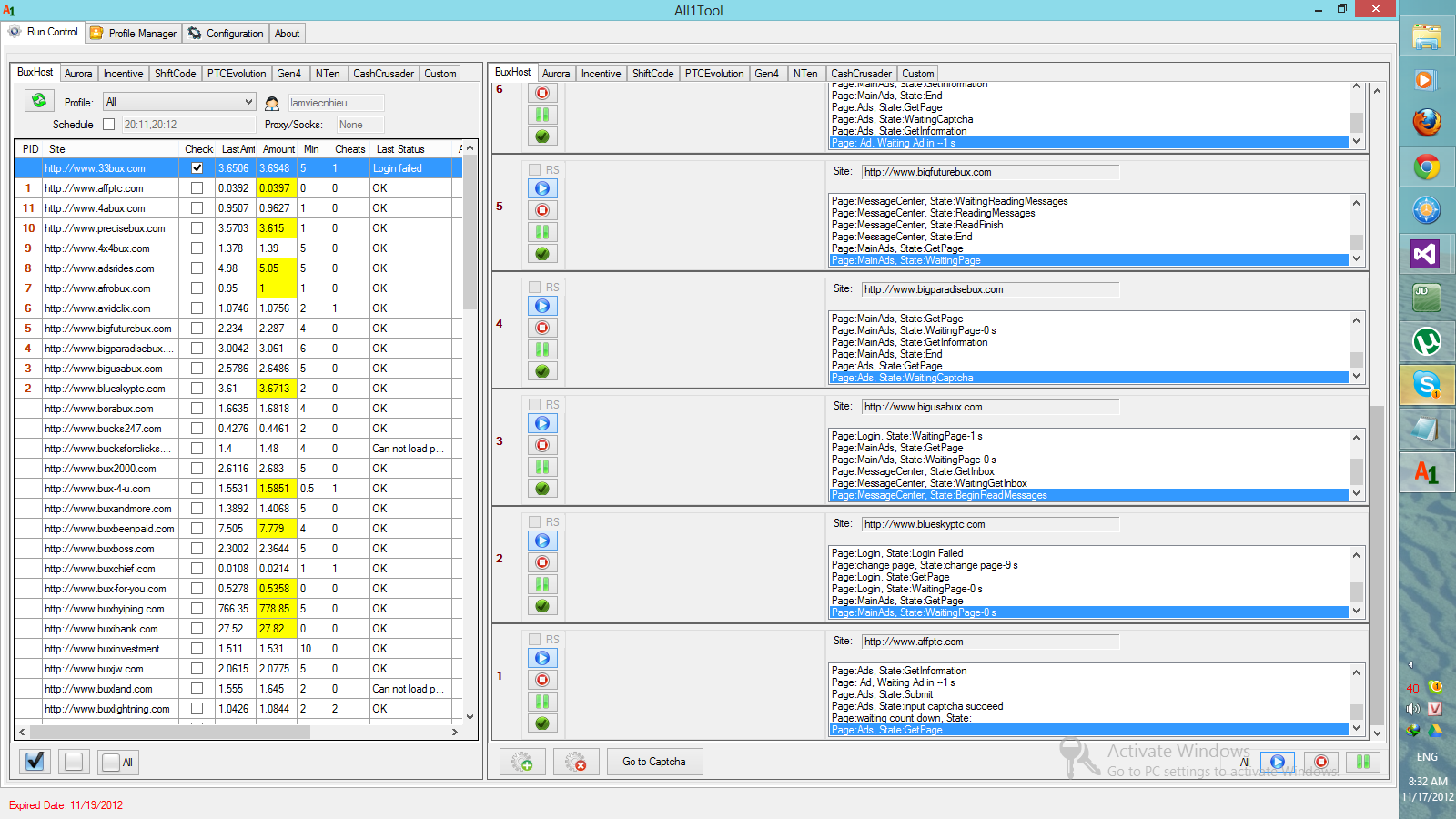 + Custom 12 site: In-cen-tria, Click-sia, Neo-bux, ibux-ers, ptc-box, probux, vilvin, buxdev, buxp, sambux, intlinx, clicks-fx