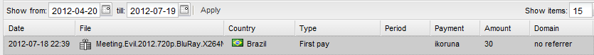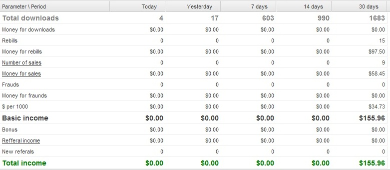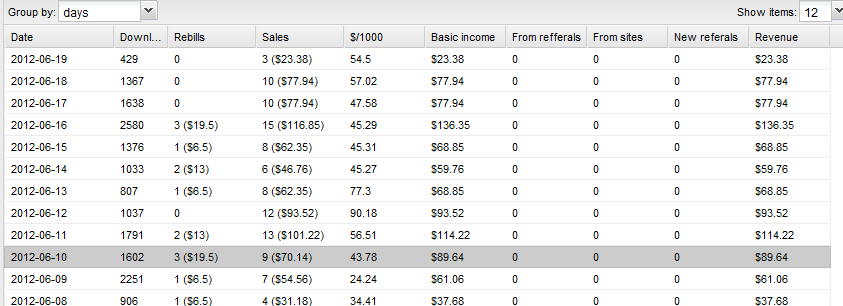 Date Downloads Premium Sales Rebills Site Sales Referrals Total