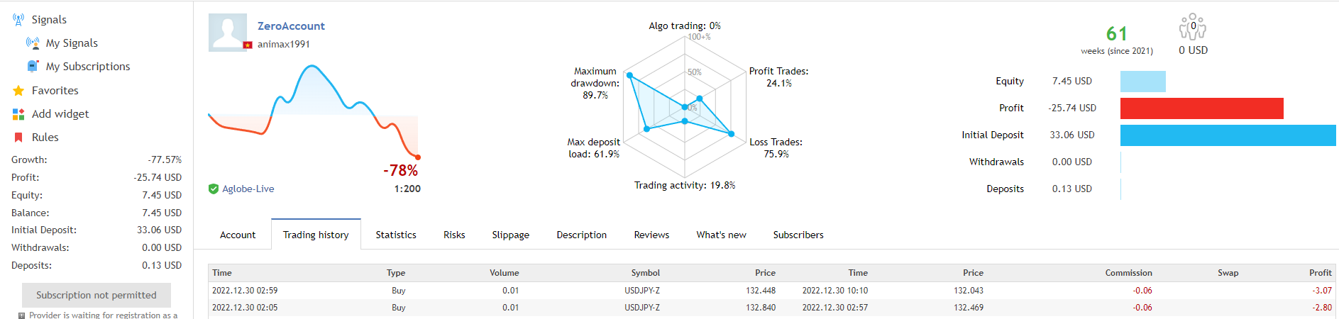 Đợt dki cái sàn hextra j đó nó cho 20u. e đánh lên 60u. tưởng m giỏi, bỏ luôn stoploss. sáng ngủ dậy thấy cháy sạch =)). May chưa mất đồng nào vốn thật =))