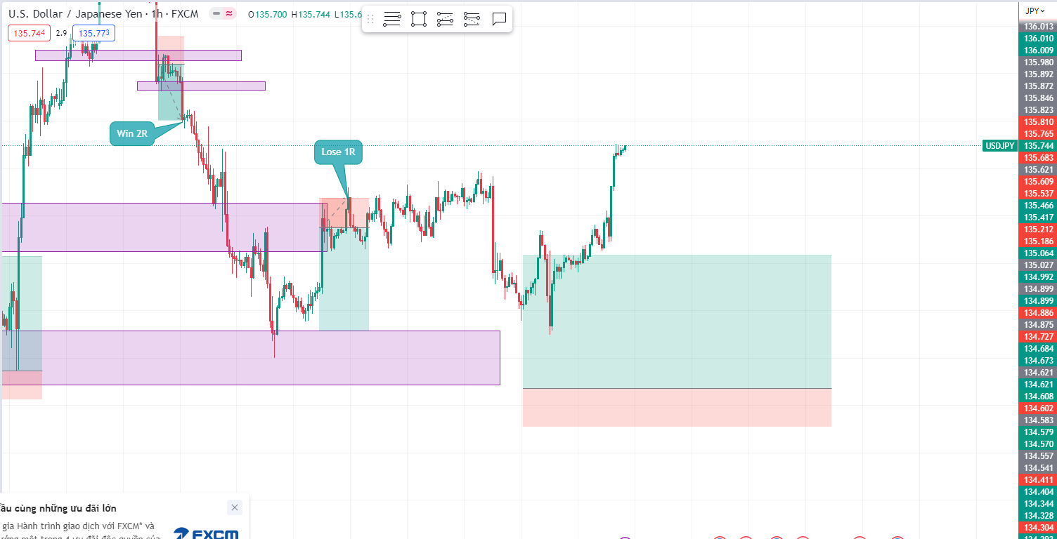 Lệnh này theo quan điểm của em: nó là phá vỡ giả ( False Break ) và USDJPY trong khoảng 1 năm nay biến động mạnh, toàn nến dài và đuôi nến sâu nên em canh dưới vùng supply hơi sâu 1 chút. Khả năng khớp lệnh thấp nhưng tỉ lệ rủi ro giảm đi đc phần nào. Em để sâu vậy rồi mà vẫn dính Stop Loss và sau đó bật mạnh lên 9R.View attachment 216645Phương pháp supply & demand à bác? Sao có lệnh này nhỉ?
