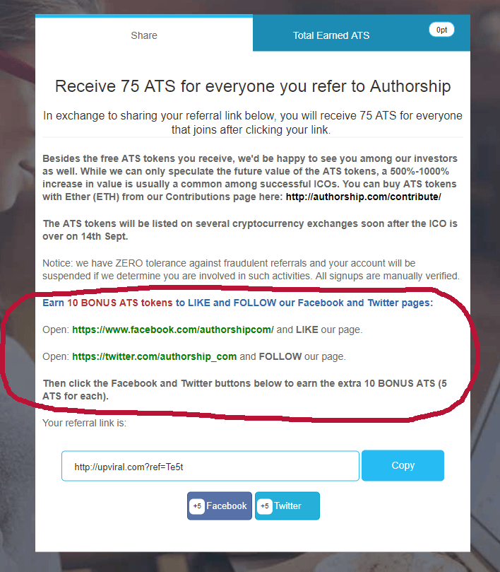 ATS Authorship đang mở ICO, tặng 75 ATS (tương đương 10$) cho ai đăng ký tài khoản: