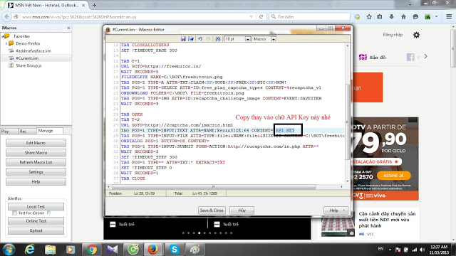 Trong đoạn Code mà bạn Copy ở có đoạn "API KEY".Bạn thay chữ đó bằng đoạn Mã của bạn.rồi hấn Save & Close.