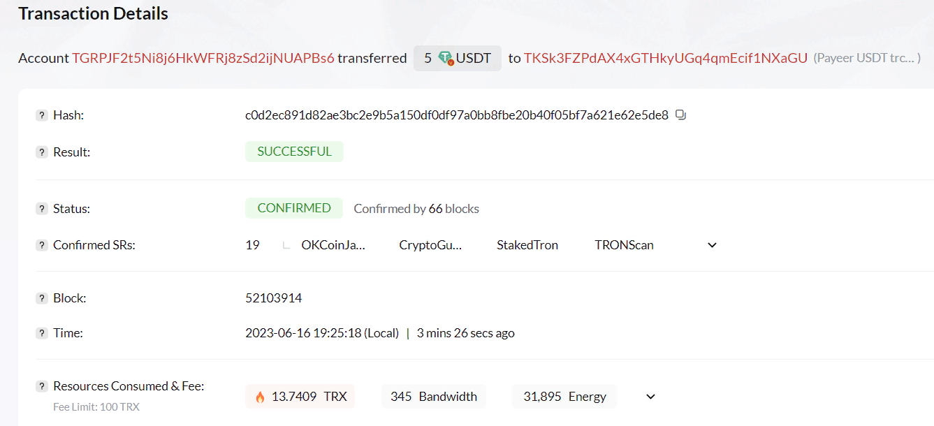 8.00 has been successfully sent to your Tether TRC20 account *.