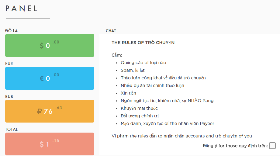 Như các bác nhìn thấy mấy site đó, tính sơ sơ cũng mấy trăm Rup chứ ít, còn cái tài khoản của em thì như các bá thấy hiện giờ nó có 1,15$, đó là tất cả tài sản hiện tại của em đấy ạ, em chưa có một khoản rút nào từ cái tài khoản Payeer này cả, mà em cũng ko có tiền để mà gửi vào tài khoản này nữa cơ, cái số tiên 1,15$ này chính là mấy site Nga mà em đang chăn nuôi gửi về đấy ạ, mỗi ngày ít nhất là 3 Rup gửi về tài khoản đó ạ