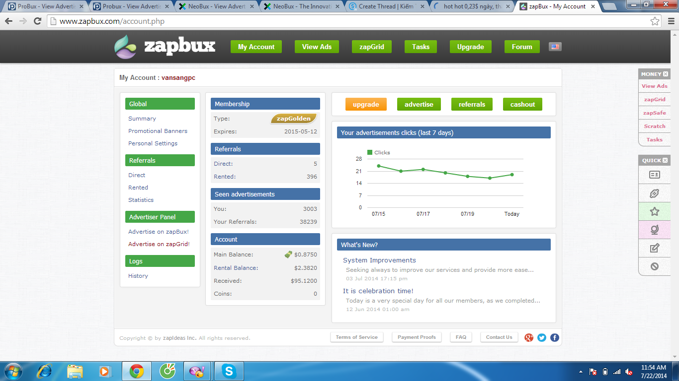 Mình đã rút về gần 100$ nay avg ổn định đều đều trên 500click/ngày. thời hạn ref trung bình 30 ngày nhé