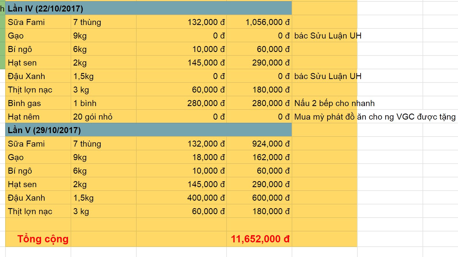 Và duy trì việc phát quà đêm ở miền bắc với số tiền 4,260,000 (Bố triệu hai trăm sáu mươi nghìn đồng)