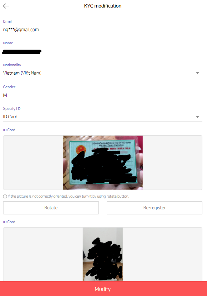 Lưu ý: KYC chỉ cần mặt trước cmnd và 1 ảnh selife cầm cmnd là được (không cần ghi gì hết)