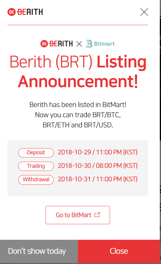 Berith Wallet - Nhận 110 BRT (dự án đến từ Hàn Quốc, đã list sàn BitMart)