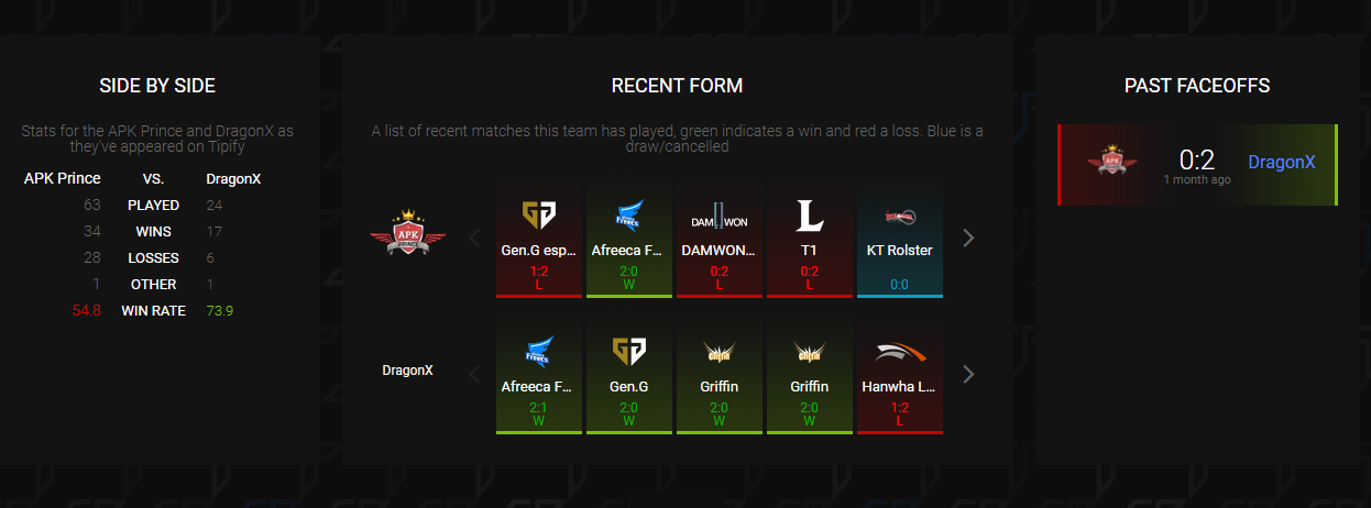 Victories in the last 5 matches: DragonX - 4 / APK Prince - 3