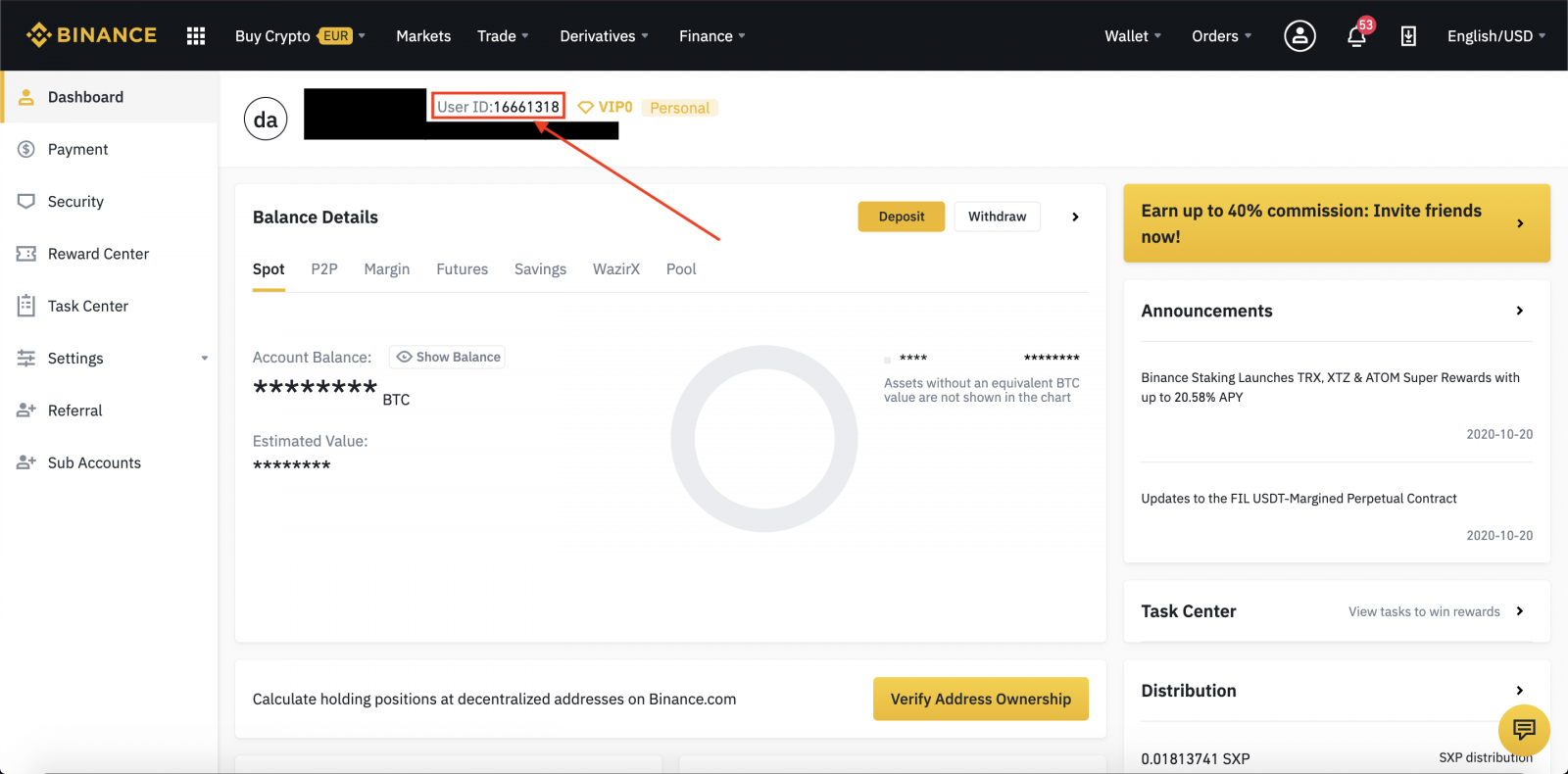 Câu hỏi Binance ID thì điền UID tài khoản của bạn
