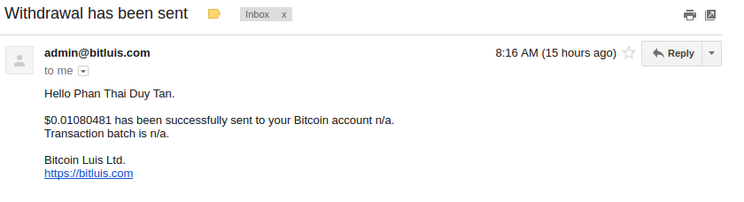 $0.01080481 has been successfully sent to your Bitcoin account n/a.